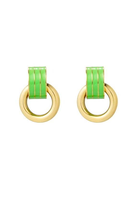 Maak je zomerlook compleet met deze trendy gouden oorbel met kleurdetail! Subtiel maar met een opvallende twist, deze oorbel is perfect voor elke gelegenheid. Gemaakt van duurzaam stainless steel en met een afmeting van 2.7 bij 2.1 centimeter, is hij zowel stijlvol als comfortabel. Verkrijgbaar in frisse kleuren groen en fuchsia, voeg je een speelse touch toe aan je outfit. Wacht niet langer en geef je sieradencollectie een upgrade!