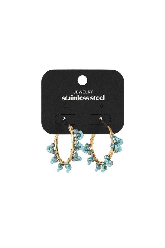 Deze elegante goud kleurige ring oorbellen, versierd met levendige lich blauwe kralen, zijn de perfecte aanvulling op elke outfit. De combinatie van het warme goud en de frisse turquoise tint zorgt voor een opvallende uitstraling die zowel casual als chic kan zijn. Voeg een vleugje kleur en stijl toe aan uw sieradencollectie met deze tijdloze accessoires, die ideaal zijn voor elke gelegenheid.