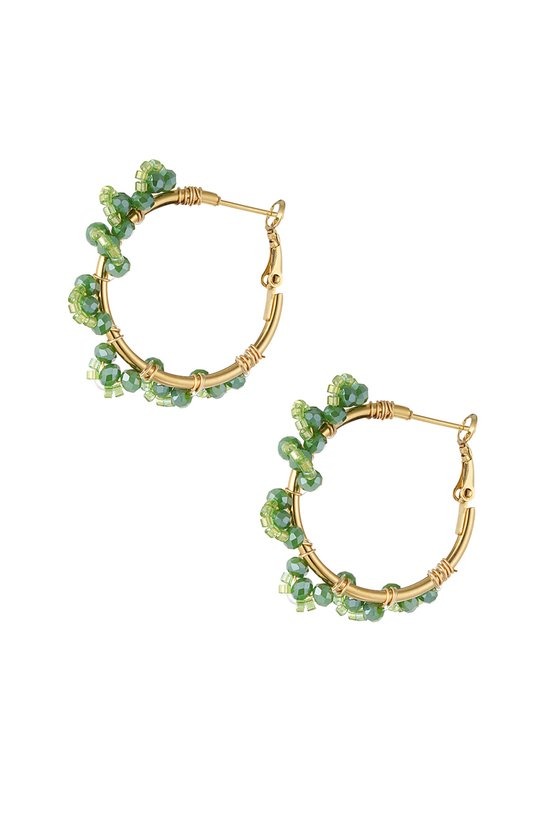 Voeg een vleugje elegantie toe aan uw outfit met deze prachtige groene en goud kleurige ring oorbellen. Het verfijnde ontwerp combineert de levendige kleur groen met de luxe uitstraling van goud, waardoor ze perfect zijn voor zowel dagelijkse als speciale gelegenheden. Deze oorbellen zijn lichtgewicht en comfortabel te dragen, terwijl ze een statement maken dat uw persoonlijke stijl benadrukt. Maak uw look compleet en laat uw schoonheid stralen met deze unieke accessoires.
