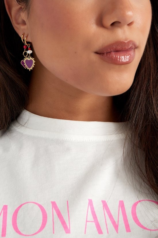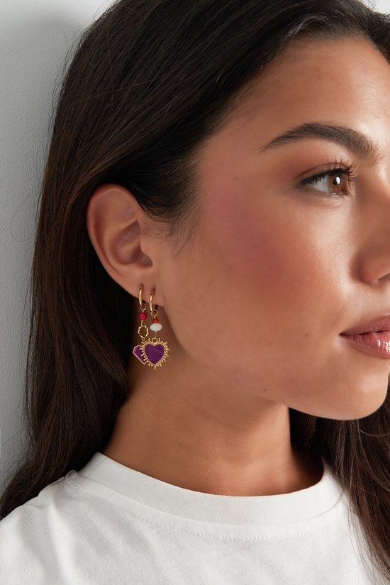 Maak een statement met onze prachtige hartoorbellen in paars en goud. Deze unieke oorbellen zijn vervaardigd uit hoogwaardige glaskralen en zijn afgewerkt met een duurzame enamel coating, waardoor ze niet alleen schitterend zijn, maar ook bestand tegen verkleuring. Met een afmeting van 1,5 cm bij 3,5 cm zijn ze perfect voor elke gelegenheid, of je nu een casual outfit wilt opfleuren of een elegante look wilt completeren. Het gebruik van roestvrij staal zorgt ervoor dat deze oorbellen niet alleen stijlvol zijn, maar ook lang meegaan. Voeg een vleugje kleur en luxe toe aan je sieradencollectie met deze betoverende hartoorbellen!
