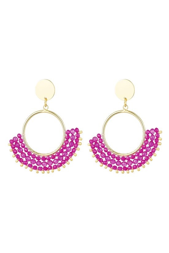 Hoe leuk zijn deze oorbellen met kristalkralen in de kleur fuchsia! Van deze prachtige oorbellen wordt je toch meteen vrolijk! De oorbellen zijn gemaakt van koper en kristalkralen en hebben een afmeting van 5 cm. Oorbellen met kristalkralen zijn eenvoudig in te doen en maken jouw outfit helemaal compleet.