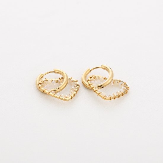 Deze prachtige oorbellen zijn vervaardigd uit hoogwaardig roestvrij staal en zijn voorzien van een luxe gouden plating, wat zorgt voor een verfijnde uitstraling. De oorbellen zijn versierd met levendige beige kralen die een speelse en frisse toets aan het geheel geven. De combinatie van het glanzende goud en de heldere beige kleur maakt deze oorbellen tot een opvallend accessoire dat perfect is voor zowel dagelijkse outfits als speciale gelegenheden. Dankzij het gebruik van roestvrij staal zijn deze oorbellen niet alleen stijlvol, maar ook duurzaam en hypoallergeen, waardoor ze geschikt zijn voor iedereen die gevoelig is voor bepaalde metalen. Voeg een vleugje elegantie en kleur toe aan uw sieradencollectie met deze unieke gouden oorbellen met beige kralen
