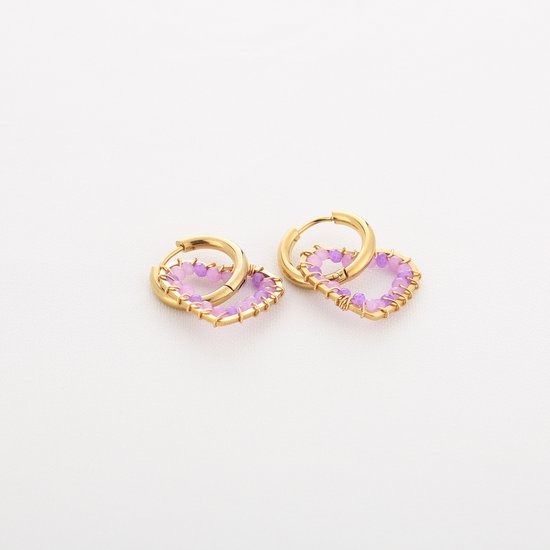 Deze prachtige oorbellen zijn vervaardigd uit hoogwaardig roestvrij staal en zijn voorzien van een luxe gouden plating, wat zorgt voor een verfijnde uitstraling. De oorbellen zijn versierd met levendige paarse kralen die een speelse en frisse toets aan het geheel geven. De combinatie van het glanzende goud en de heldere paarse kleur maakt deze oorbellen tot een opvallend accessoire dat perfect is voor zowel dagelijkse outfits als speciale gelegenheden. Dankzij het gebruik van roestvrij staal zijn deze oorbellen niet alleen stijlvol, maar ook duurzaam en hypoallergeen, waardoor ze geschikt zijn voor iedereen die gevoelig is voor bepaalde metalen. Voeg een vleugje elegantie en kleur toe aan uw sieradencollectie met deze unieke gouden oorbellen met paarse kralen.
