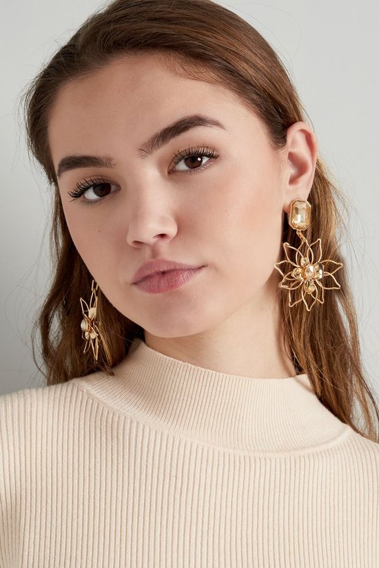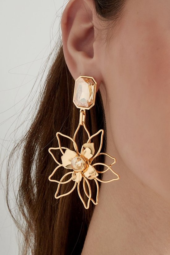 Deze prachtige oorbellen met bloemenhanger zijn echt een must voor jouw collectie! De glimmende steentjes aan de oorsteker en in het midden van de bloem geven deze oorbel een chique uitstraling.