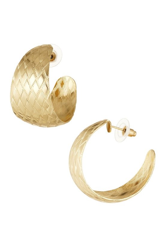 Wauw! Shop nu deze gouden statement oorbellen in de vorm van een half maantje met zigzag print ! Mega trendy en superleuk te combineren met meerdere sieraden met hartjes details! De oorbellen zijn gemaakt van metaal en hebben een afmeting van 3,4 cm.