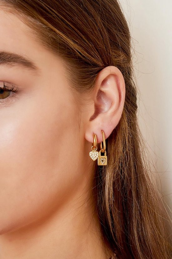 Roestvrijstalen oorbellen met slotbedel met hart met strass-steentjes