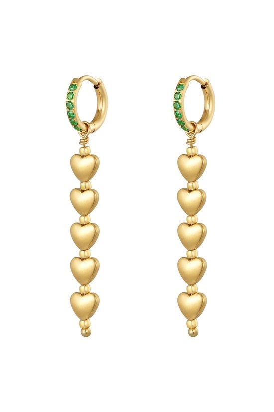 YWG - Oorbellen met vijf hartjes - Green & Gold Hematiet