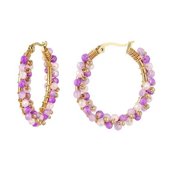 Wij zijn helemaal verliefd op deze prachtige oorbellen in de kleur paars! Deze oorbellen fleuren jouw outfit helemaal op! Stijl deze oorbellen met neutrale sieraden voor een casual look. Ben jij meer op zoek naar een statement look? Combineer dan deze oorbellen met meerdere gekleurde sieraden! Deze oorbellen zijn gemaakt van stainless steel, glaskralen en kristalkralen en hebben een afmeting van 3,5 cm.