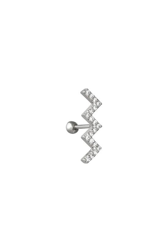 YWG - Piercing in bliksemvorm zilver met decoratieve steentjes.