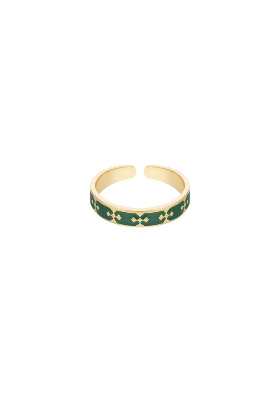 WAUW! Hoe mega trendy is deze gouden ring met groene print! De ring is mega trendy dankzij het opvallende kleurtje en is daarmee superleuk te combineren met meerdere kleurrijke sieraden en accessoires. Zo creëer jij een prachtige statement look. De ring is one size, waardoor je de ring ideaal kunt buigen naar de vorm van jouw vinger. Deze prachtige ring is gemaakt van stainless steel in combinatie met enamel