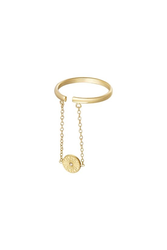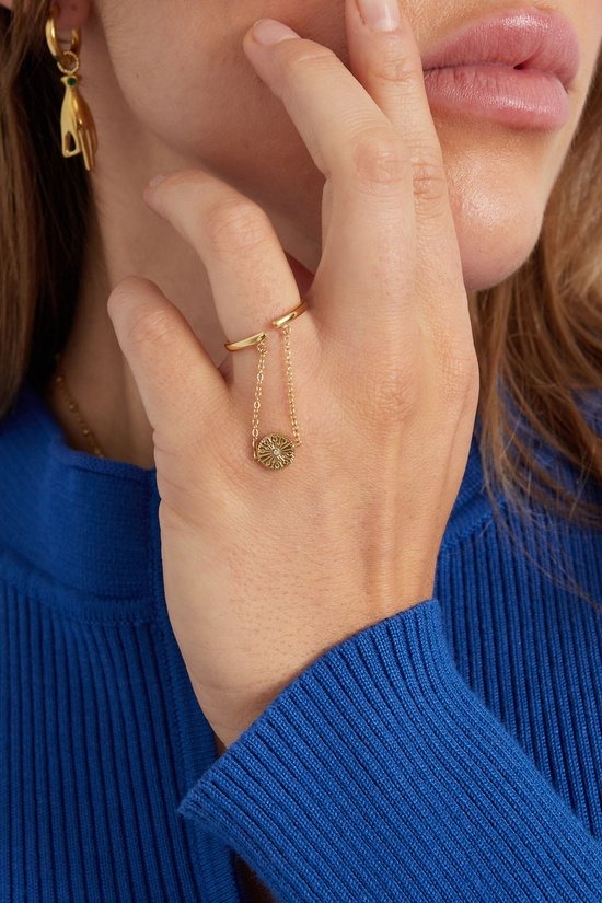 Ben jij voor jouw collectie op zoek naar een trendy gouden ring? Dan is deze gouden ring met cirkeltje verbonden door een kettinkje echt iets voor jou! De ring is mega trendy en daarnaast perfect te combineren met meerdere matchende ringetjes! De ring is gemaakt van stainless steel en strass steentjes en is one size. Doordat de ring one size is, kun je de ring ideaal naar elke vorm van jouw vingers buigen. Verkrijgbaar in de kleuren zilver en goud.