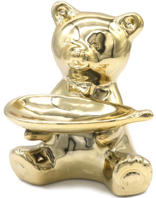 Deze prachtige gouden keramieken teddybeer is een verfijnde aanvulling voor elk interieur. Met een hoogte van 11,5 cm en een elegant sieraden schaaltje in zijn pootjes, biedt deze beer niet alleen een charmante uitstraling, maar ook een praktische opbergoplossing voor kleine sieraden of andere kostbaarheden. Perfect als cadeau of als decoratief stuk voor uw eigen huis, deze teddybeer voegt een vleugje luxe en schattigheid toe aan elke ruimte. Maak uw collectie compleet met dit unieke en stijlvolle item.