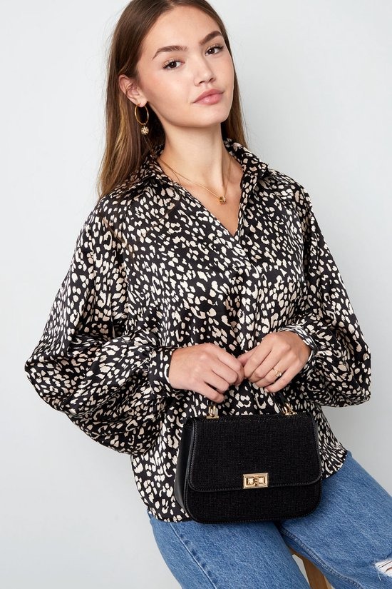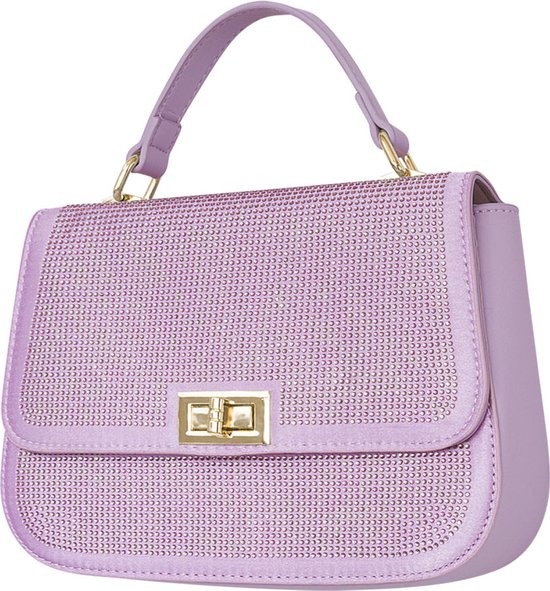 Wauw! Wat is dit lila tasje met prachtige strass steentjes toch leuk! Dit mooie tasje heeft een kort hengsel bovenop de tas en heeft een goudkleurige draaisluiting op de voorkant van de tas. Om dit tasje helemaal af te maken is de voorkant voorzien van bijpassende strass steentjes, prachtig! Afmetingen: 6 x 16 x 23 cm.
