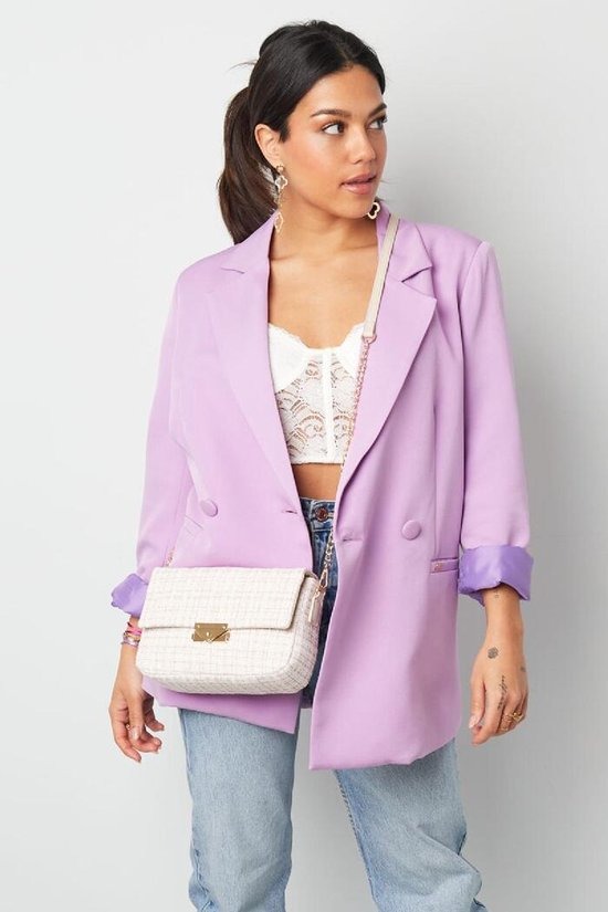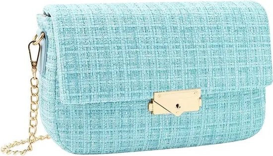 Hoe leuk is deze lichtblauwe tas met print, gemaakt van stof! Deze tas is perfect voor een gezellig avondje maar kan ook perfect alledaags gebruikt worden. Dankzij het gouden hengsel en het gouden detail aan de voorkant krijgt de tas een speels uiterlijk. De tas sluit eenvoudig en heeft een afmeting van 23 x 15 x 7 cm. Deze prachtige tas is gemaakt van 95% polyester en 5% metaal
