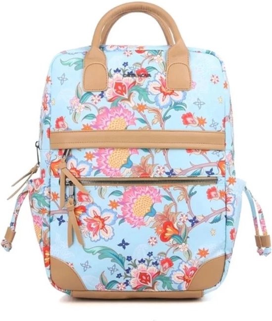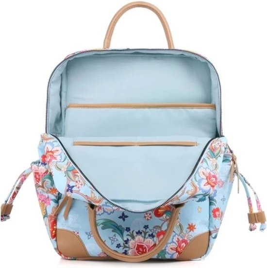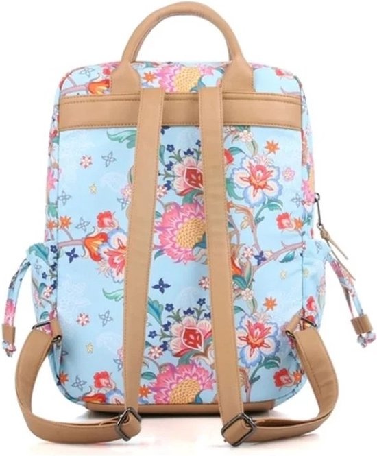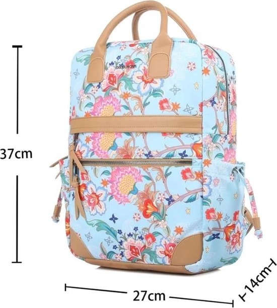 Deze stijlvolle rugzak is uitgevoerd in een prachtige blauwe kleur en is versierd met een levendig bloemenpatroon dat een frisse en vrolijke uitstraling geeft. Het ontwerp is niet alleen esthetisch aantrekkelijk, maar ook functioneel, met een stevige rits die zorgt voor een veilige afsluiting van de hoofdcompartiment. De rugzak is ideaal voor dagelijks gebruik, of het nu gaat om school, werk of een dagje uit. De ruime binnenkant biedt voldoende opbergruimte voor al uw essentials, terwijl de verstelbare schouderbanden zorgen voor een comfortabele pasvorm. Dit accessoire is perfect voor iedereen die functionaliteit en stijl wil combineren in hun dagelijkse leven.