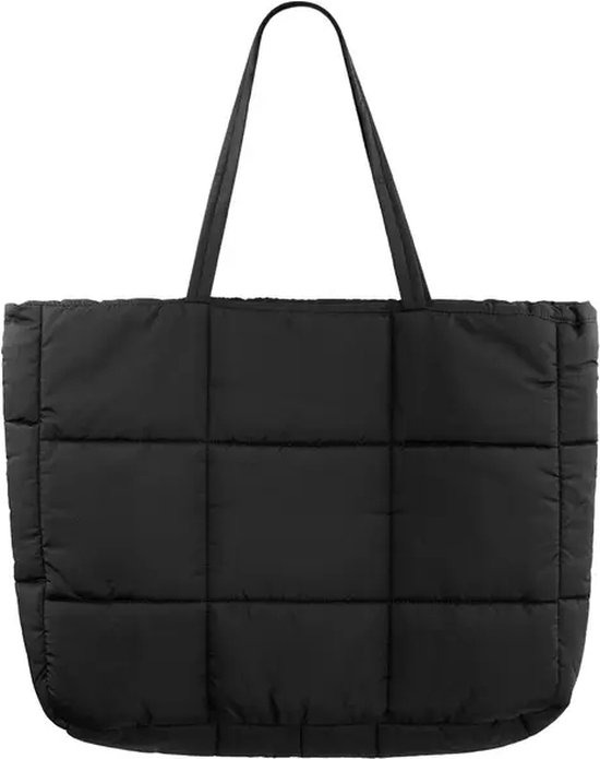 Zwarte Gewatteerde Shopper All Day - Trendy Ruime Shoppers - Grote Modieuze Tassen - Zwart