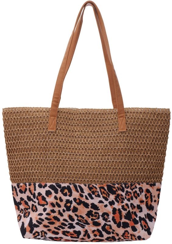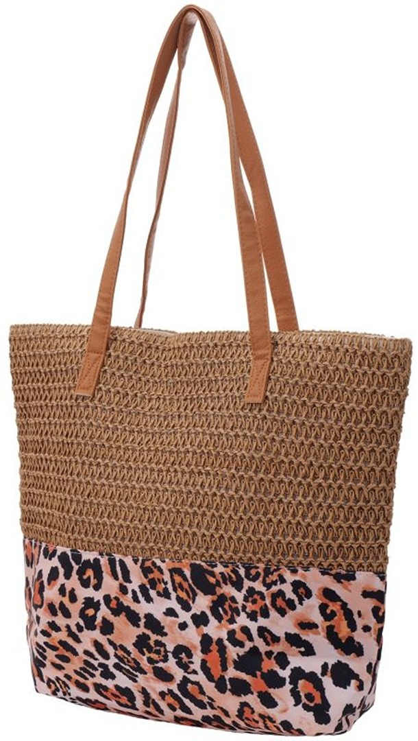 She life style - Strandtas - Beach Bag Woven Leopard - 47x36x13cm - Bruin