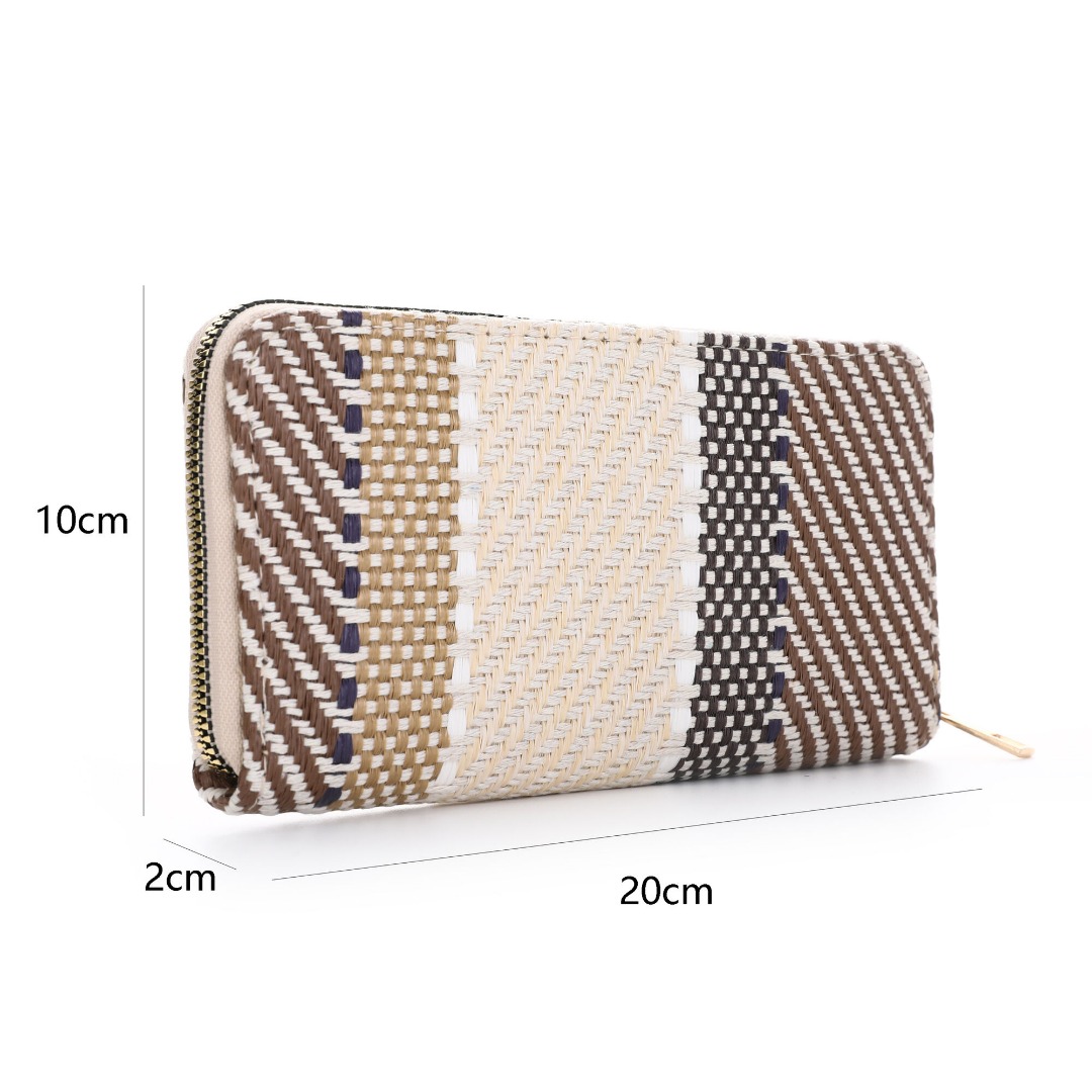 Deze gestreepte portemonnee, vervaardigd uit hoogwaardig geweven stof, combineert stijl met functionaliteit. Met afmetingen van 10 x 20 x 3 cm biedt deze portemonnee voldoende ruimte voor al uw essentiële kaarten en contant geld, terwijl het unieke ontwerp een modieuze uitstraling garandeert. Perfect voor dagelijks gebruik of als een trendy accessoire voor speciale gelegenheden. Voeg een vleugje kleur en textuur toe aan uw accessoires met deze veelzijdige portemonnee.
