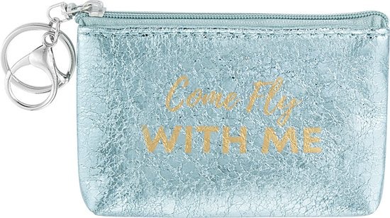 Hoe leuk zijn deze metallic portemonneetjes in de kleur blauw met gouden tekst: come fly with me. De portemonnees zijn bevestigd aan een sleutelhanger, waardoor je deze portemonnee perfect kunt verbinden met jouw sleutels. Deze sleutelhangers zijn ook superleuk om cadeau te geven. De portemonnees zijn gemaakt 95% PU en 5% metaal en hebben de volgende afmetingen: 12,5 x 8 cm. Verkrijgbaar in de kleuren: groen, blauw, fuchsia, zwart en goud. Deze metallic tasjes zijn verkrijgbaar in diverse varianten.