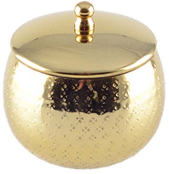 Sublimeer uw interieur met onze ronde kaars, elegant gepresenteerd in een gouden metalen ondersteuning met bijpassende dekking. Het delicate parfum harmoniseert met het verfijnde ontwerp van dit decoratieve stuk, wiens afgeronde vorm en de gouden afwerking een vleugje luxe en moderniteit brengen. Naast het uitzenden van een betoverend parfum, is deze kaars een echt object van kunst, perfect voor het verrijken van je ruimte terwijl een warme en rustgevende sfeer wordt gecreëerd.