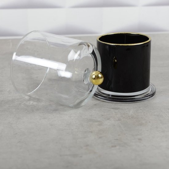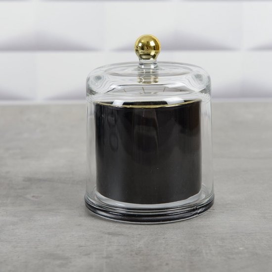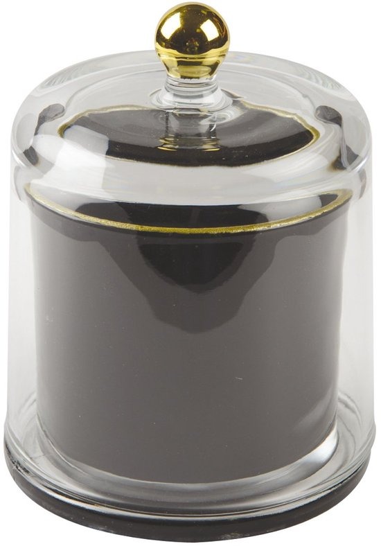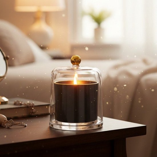 Breng een vleugje exotische elegantie in uw interieur met onze zwarte bel en gouden contourkaars, op smaak gebracht met tonka.