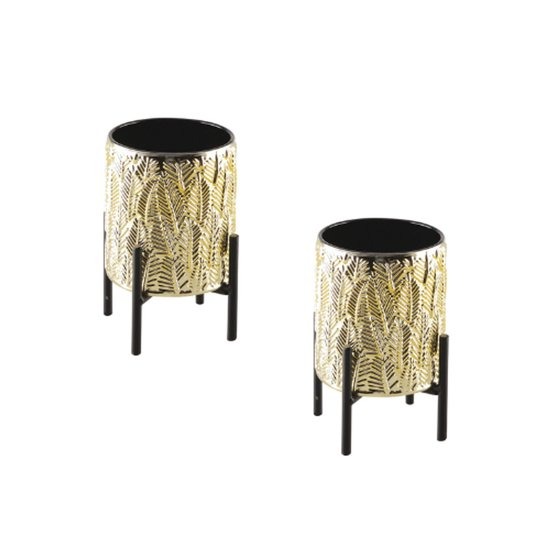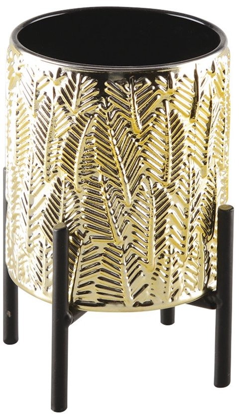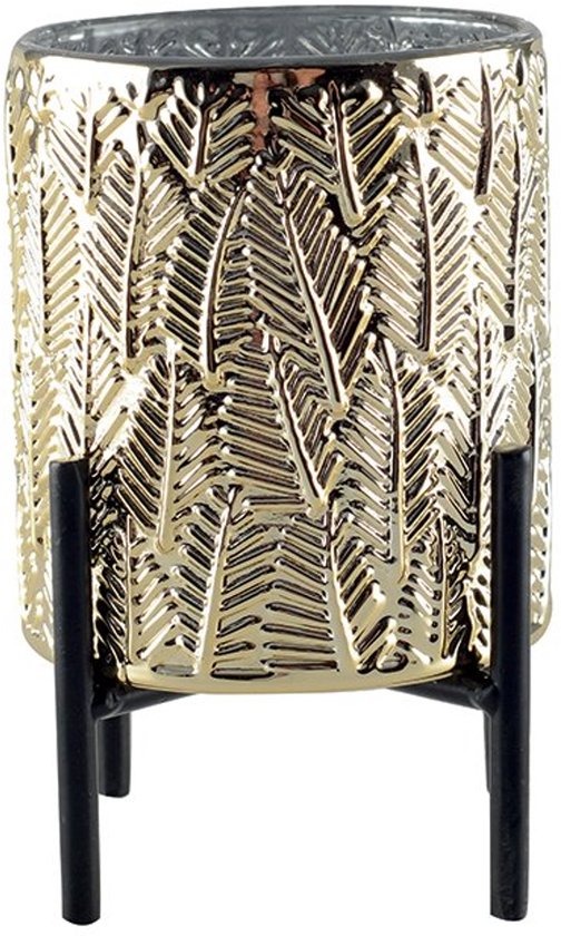 Voeg een vleugje verfijning toe aan uw interieur met onze gouden kandelaar versierd met een elegante zwarte voet en een delicaat bladpatroon. Dit contrast tussen de gouden glans en de zwarte basis brengt een moderne en verfijnde uitstraling, ideaal om uw decoratie te sublimeren. Het fijn gegraveerde bladpatroon voegt een organische aanraking toe die de natuur oproept en tegelijkertijd chic en minimalistisch blijft.