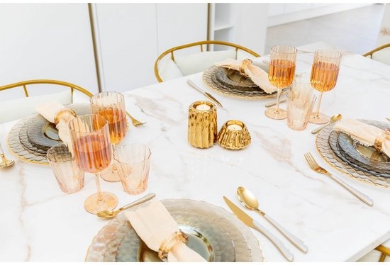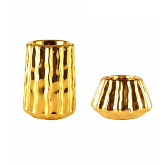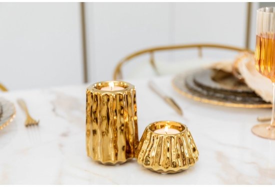 Voeg een textuur luxe aanraking toe aan uw interieur met onze briljante gouden kandelaars. Deze unieke modellen onderscheiden zich door hun heldere gouden afwerking, verbeterd met reliëfpatronen die licht van verschillende hoeken vastleggen, waardoor een subtiel spelletje van reflecties en schaduwen ontstaat. Het contrast tussen de schittering van het goud en de verhoogde texturen brengt deze waxinelichtjeshouders een gedurfd en verfijnd karakter, perfect om elke kamer te verfraaien.