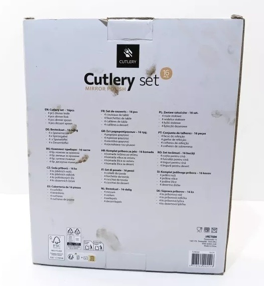 Deze stijlvolle 16-delige bestekset bevat: 4 x messen, 4 x vorken, 4 x eetlepels en 4 x dessertlepels.