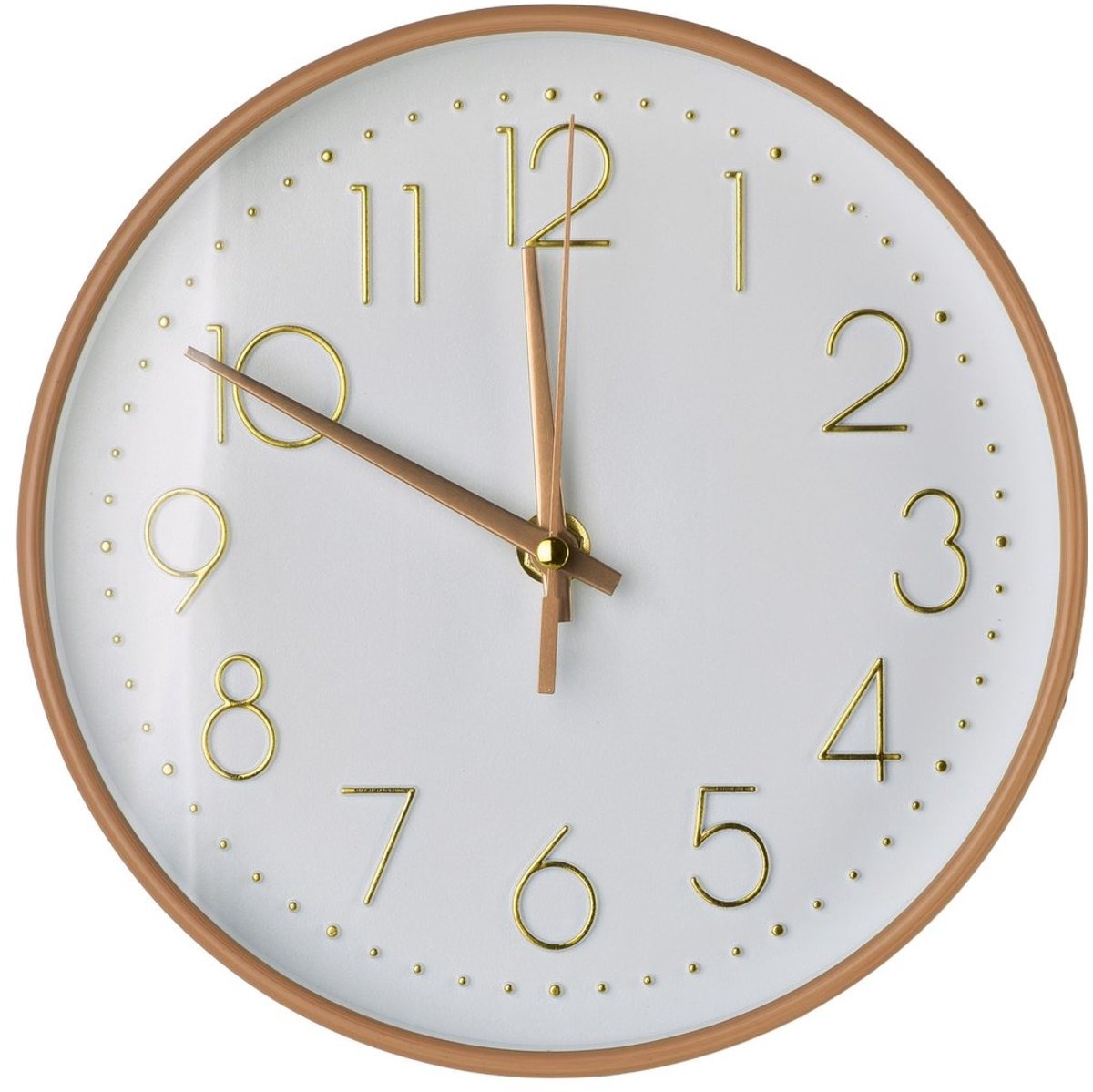 Deze stijlvolle wandklok uit de RAMSEY collectie van MONDEX , met een afmeting van 20x20x4 cm, is gemaakt van hoogwaardig kunststof in een warmbruine kleur, waardoor hij een natuurlijke en elegante uitstraling heeft. De ronde wijzerplaat is versierd met duidelijke, verhoogde Arabische cijfers in een glanzende gouden kleur, die prachtig contrasteren met de lichte achtergrond en het aflezen van de tijd gemakkelijk maken. Het ontwerp wordt gecompleteerd door op kleur afgestemde gouden wijzers die nauwkeurig bewegen, waardoor een modern karakter met een vleugje klassieke luxe aan elk interieur wordt toegevoegd. Dankzij het compacte formaat en de harmonieuze kleurstelling is de klok perfect voor zowel een gezellige slaapkamer als een professioneel ingericht kantoor. 20x20x4 cm
